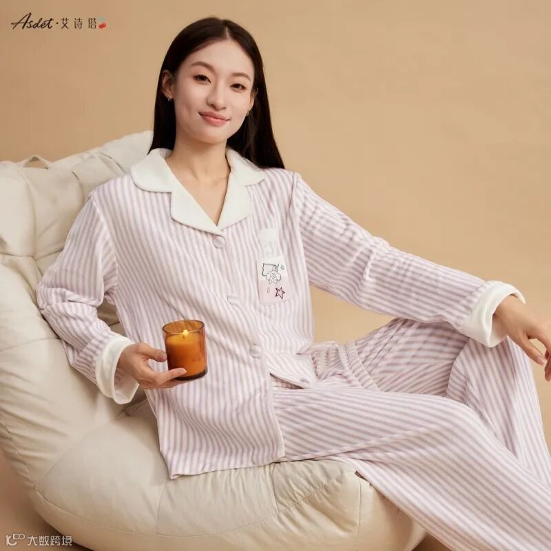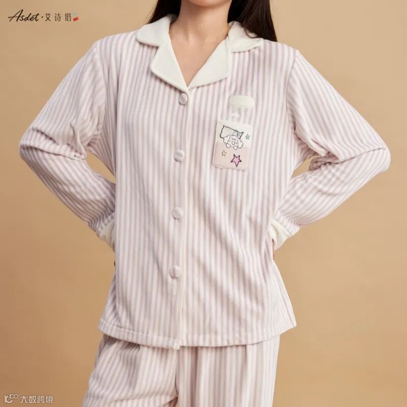 暖肤绒翻领家居服套装