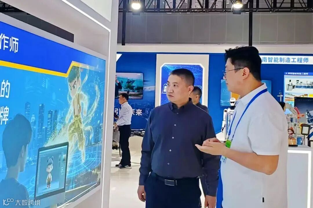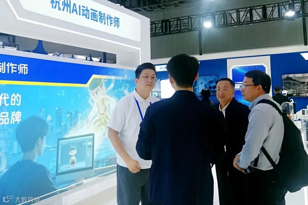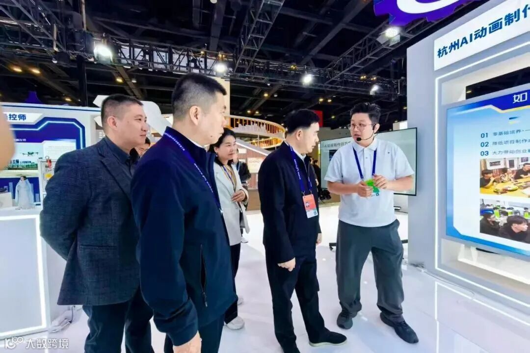 (李晓龙总经理正在为各级领导讲解“杭州AI动画师”劳务品牌)