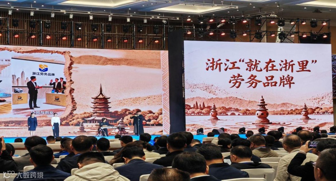 在悠扬的笛声衬托下,浙江“就在浙里”劳务品牌在以“杭州AI动画制作师”提供技术支持的沙画表演中徐徐展开,为杭州劳务品牌的发展揭开崭新篇章。