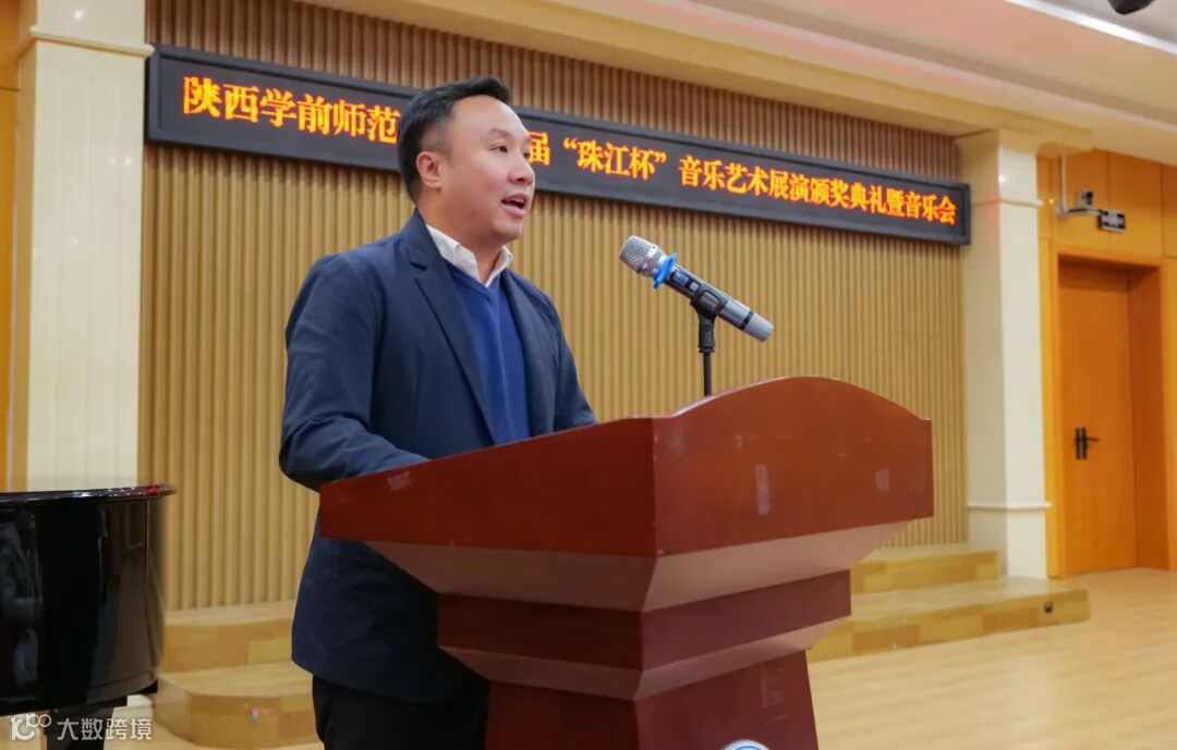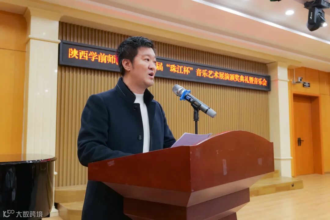 颁奖典礼伊始,音乐学院副院长白学良致辞,回顾展演筹备历程,肯定师生专业素养与热情,感谢企业支持并寄语学子坚守艺术初心。