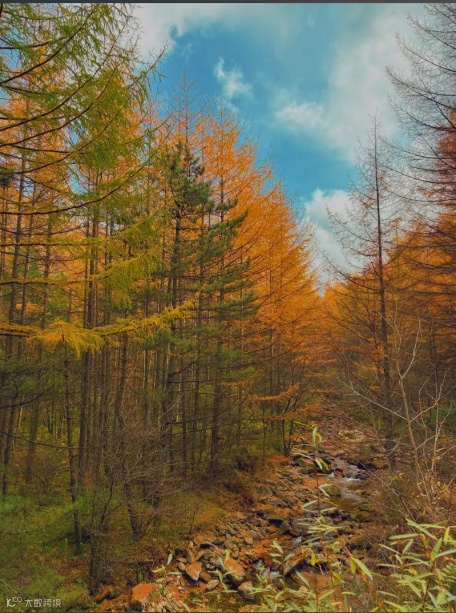 鸡窝子,位于秦岭山脉中段,沣峪口附近,海拔2000米左右,这里地处黄河与长江分水岭,有一片保存完整的冷杉林。到了深秋季节,树干断直,树冠成圆锥形或尖塔形的冷杉树,树叶变黄之后,成片的金黄色,看起来很震撼。