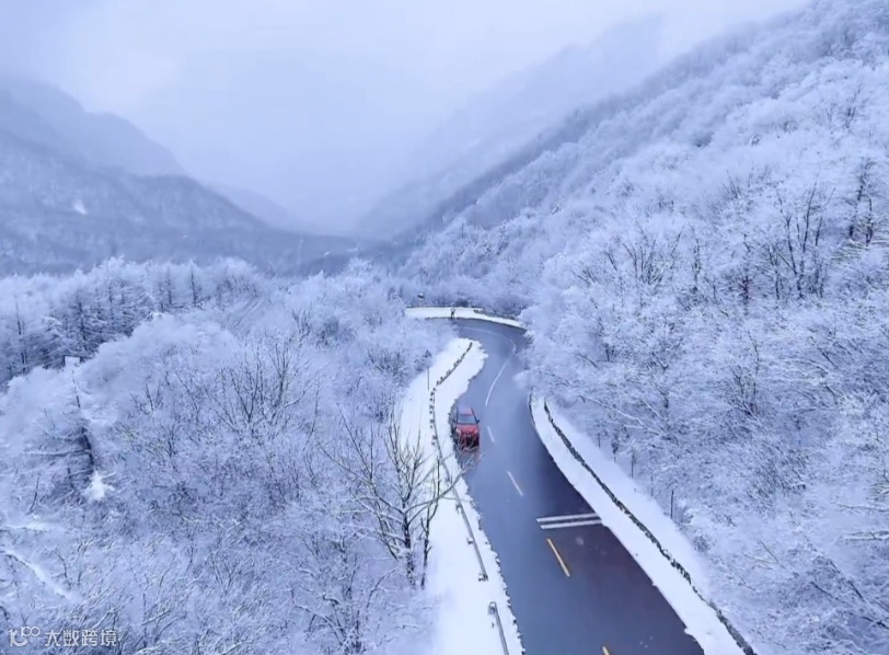 西安城里刚刚降温,就有人开始吆喝去分水岭看雪。从市里出发,开车过去大约需要2个小时车程。雪后的秦岭,宛如一幅静谧的水墨画,浓淡相宜,层次分明。苍茫的山峦被皑皑白雪覆盖,山势如墨,远近稀疏之间透出淡淡的清韵。