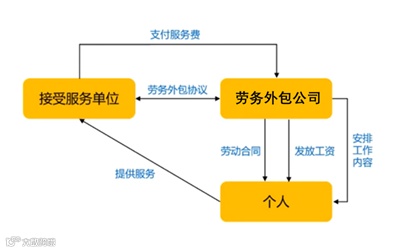 涉及三方:发包企业、外包服务公司、劳动者。关系如下图所示:
