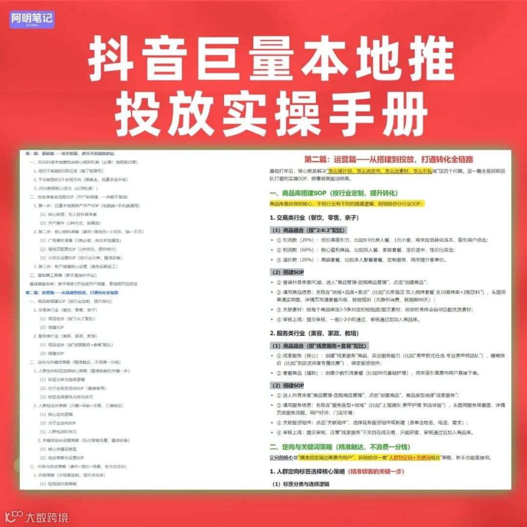 关注阿明笔记:后台回复“本地推”获取2026最新投放SOP模板