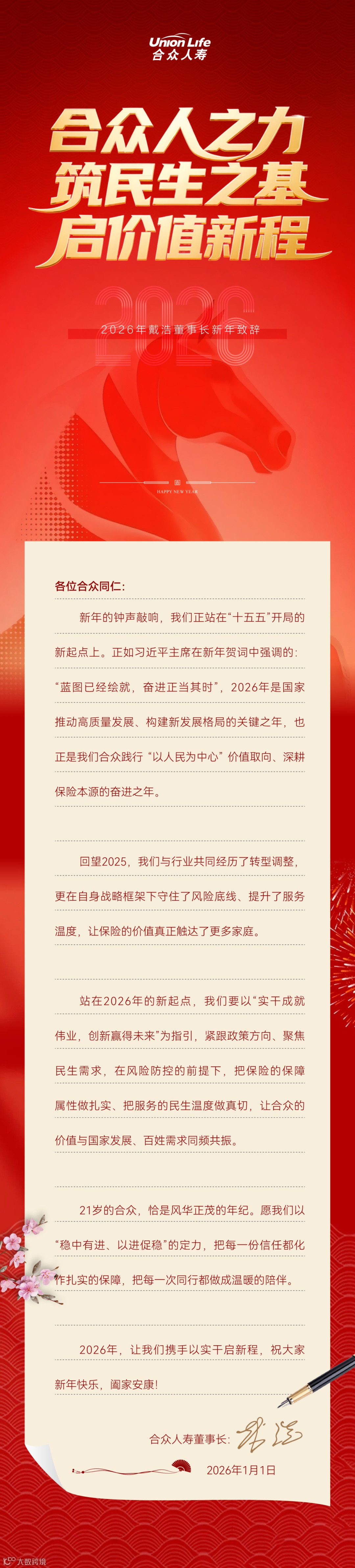 2026年新年致辞 | 董事长戴浩:合众人之力 筑民生之基 启价值新程