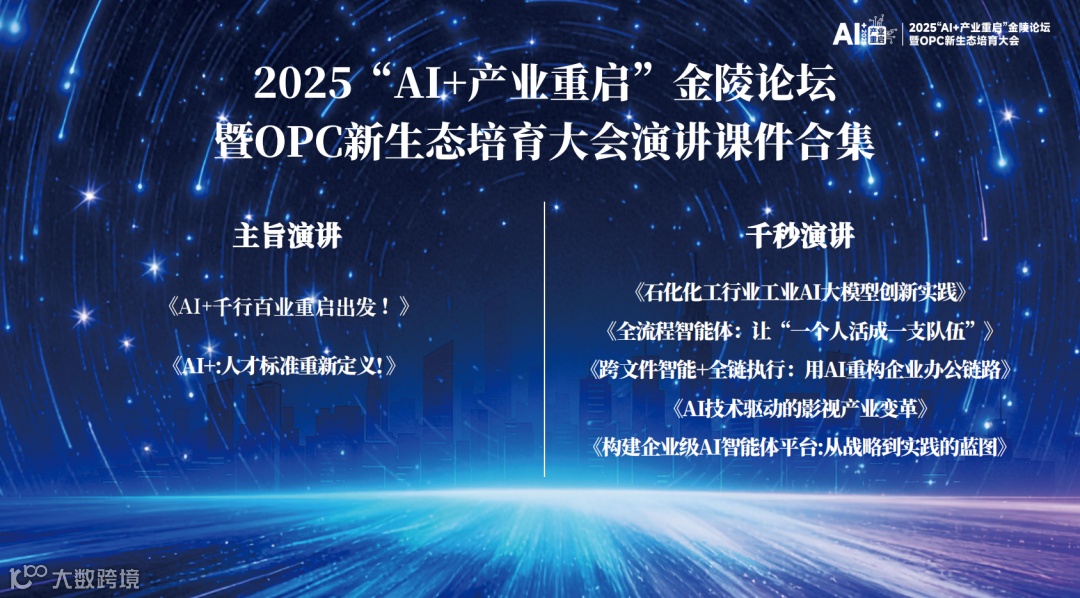 今天,我们将大会最硬核、最干货的精华——《2025“AI+产业重启”金陵论坛暨OPC新生态培育大会演讲合集》 正式公开。这份161页的PPT,不是简单的演讲记录,而是凝结了数位智库专家智慧与实战经验的“行动地图”。