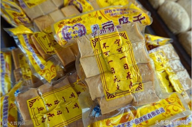 其中,还有真空包装的豆腐干,上面写着“商州特产”和“商洛名品”的标志,原来这里的豆腐干是本地的特产呀!包装的显眼处写着:“宁可一日无肉,不可一日无豆”。由此可见,豆制品在当地人们生活中的重要地位。