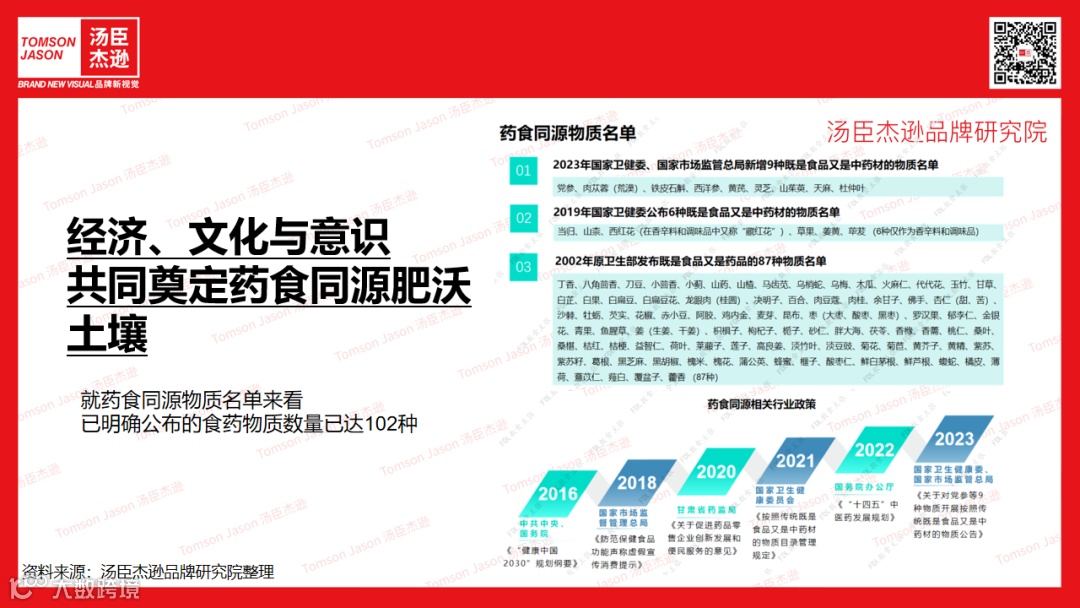 总结来看,从经济、文化以及社会共识等多个层面,都为药食同源的发展提供了丰厚的土壤。