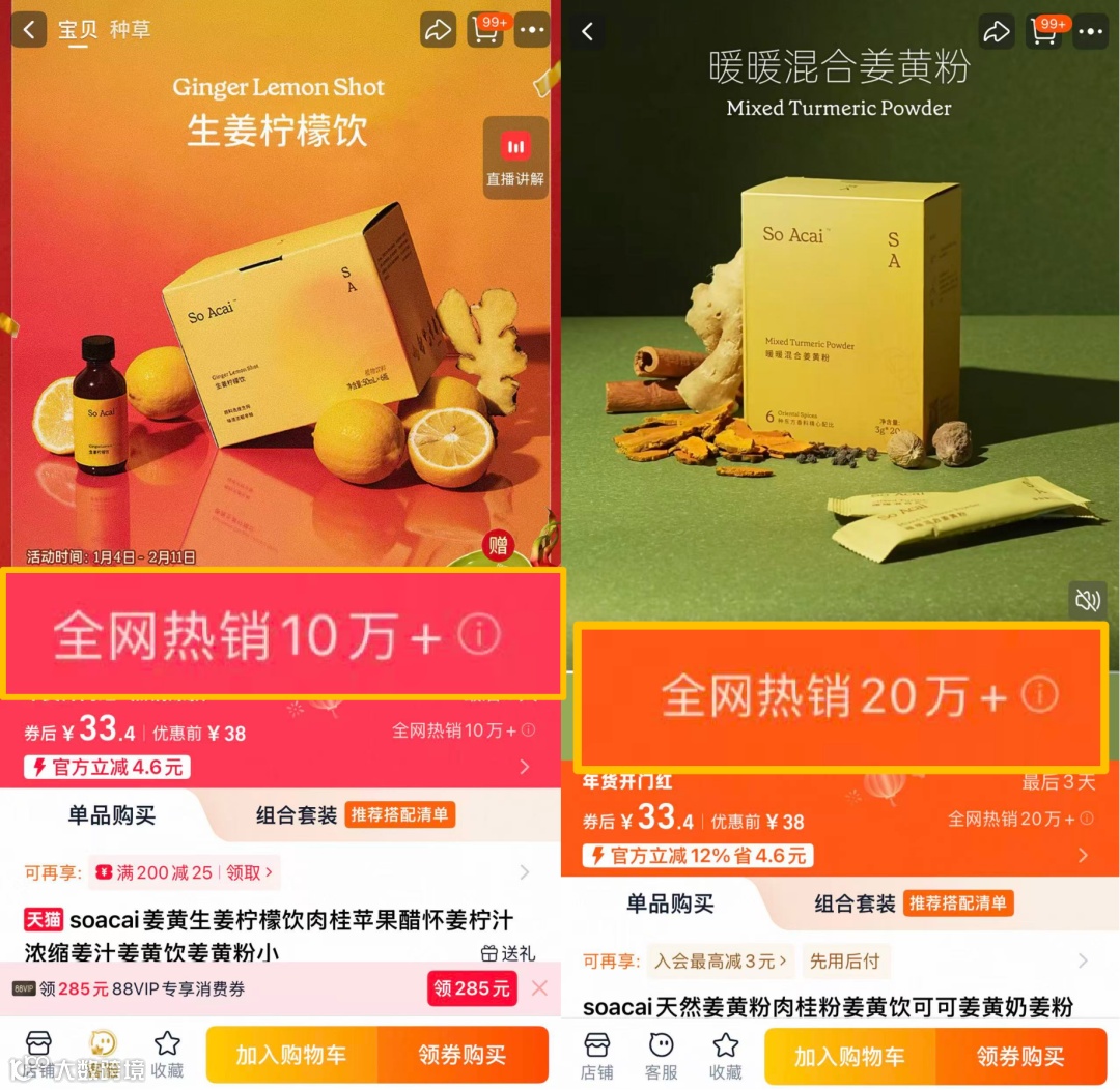 电商页面显示,So Acai的姜黄产品销量达到10w+,姜黄类目的爆发背后是漫长的品牌铺垫。