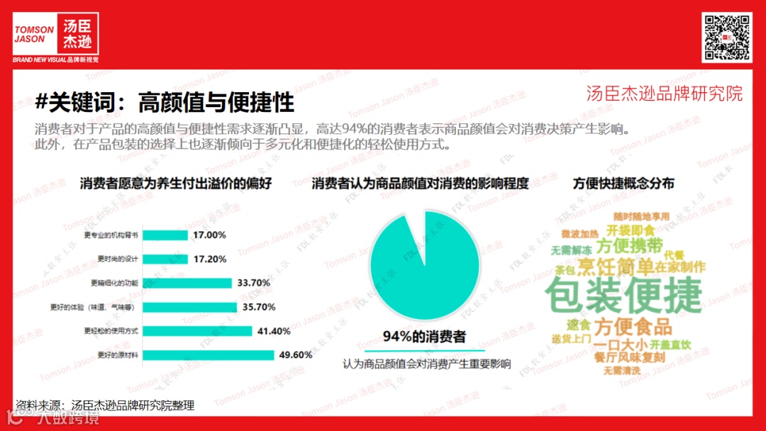 在关注产品本身特性的同时,消费者对于产品的高颜值与便捷性需求逐渐凸显,高达94%的消费者表示商品颜值会对消费决策产生影响。