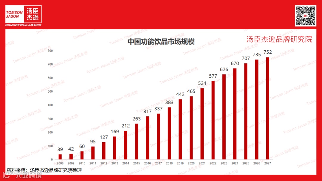 2023年市场规模达到626亿元,未来功能饮料市场随着消费场景的不断拓展将会释放庞大的市场潜力,预测2027年功能饮料市场规模将达到752亿元。