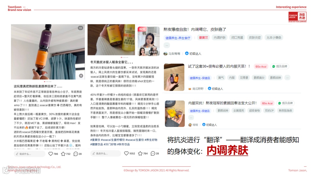 你的品牌够不够吸引人除了取决于产品本身之外,还在于品牌赋予这个产品的“意义”。So Acai深度链接用户的打法,恰恰验证了“造梦”的必要性,也是在这样的铺垫下,So Acai的姜黄饮得以成功俘获消费心智。