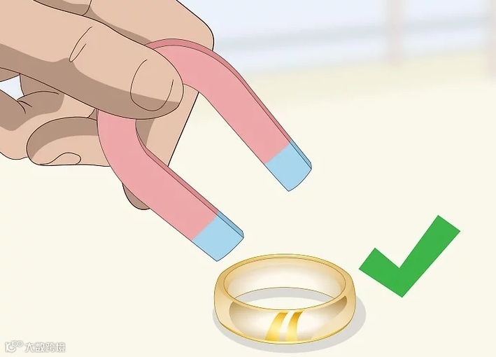 将磁铁缓慢靠近首饰,若产生吸附感,则说明含有铁、镍等磁性金属杂质。纯金为非磁性材料,不会被磁铁吸引,此法可用于快速排除明显假货。