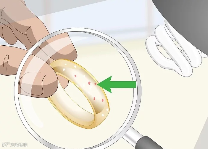 使用强光或放大镜检查表面是否存在白色或红色小点。此类斑点往往是底层金属暴露所致,是镀金层磨损的典型特征。
