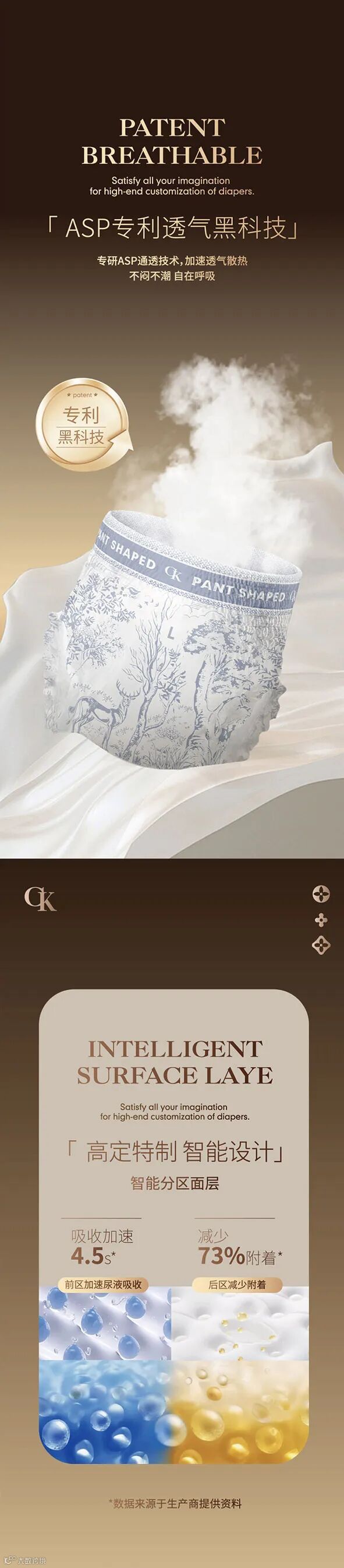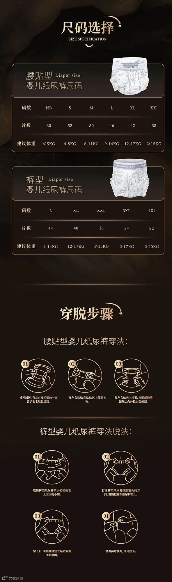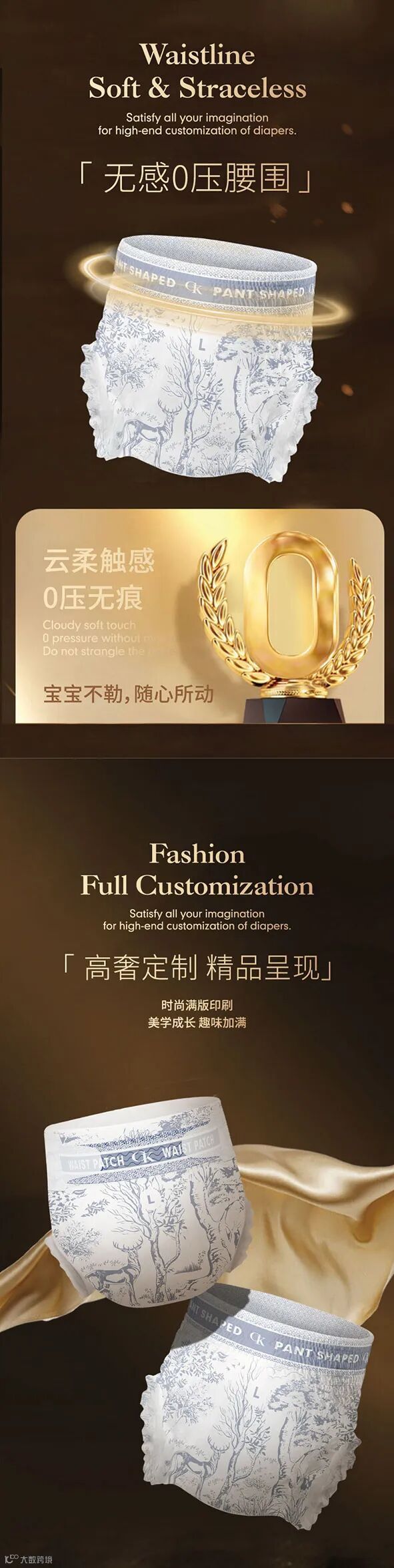 创新与经典的图腾交错排列,是从传统中萃取、致敬中成蝶的奢贵展现,用艺术风貌表达品牌态度,带着独特的设计元素与专属感,成为纸尿裤的前沿标杆。