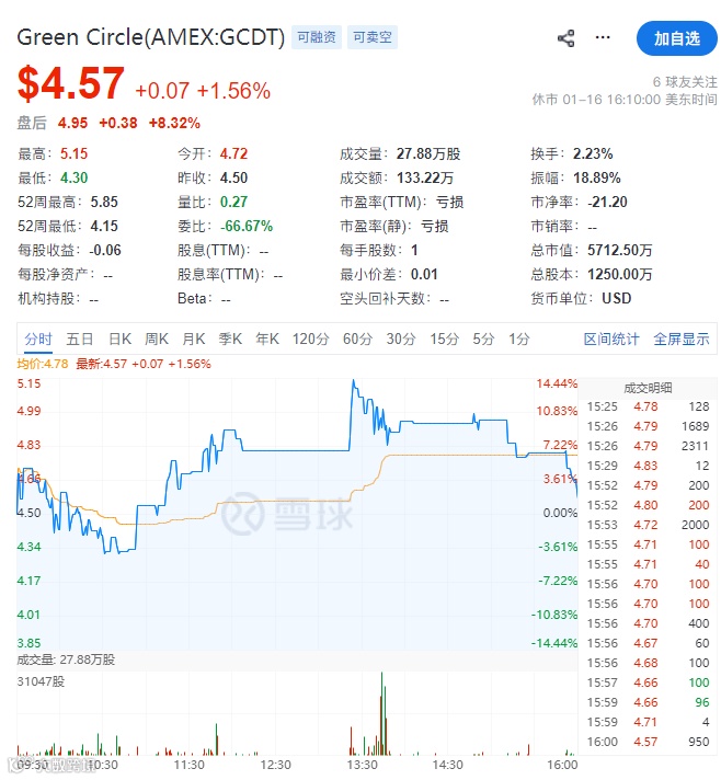 当地时间2026年1月13日,专注于相变材料储能技术的Green Circle Decarbonize Technology Limited(宝加国际)成功登纽交所,成为今年首家在美上市的中概股,公司以每股4美元的价格发行250万股,募资1000万美元。目前公司最新股价4.57美元。
