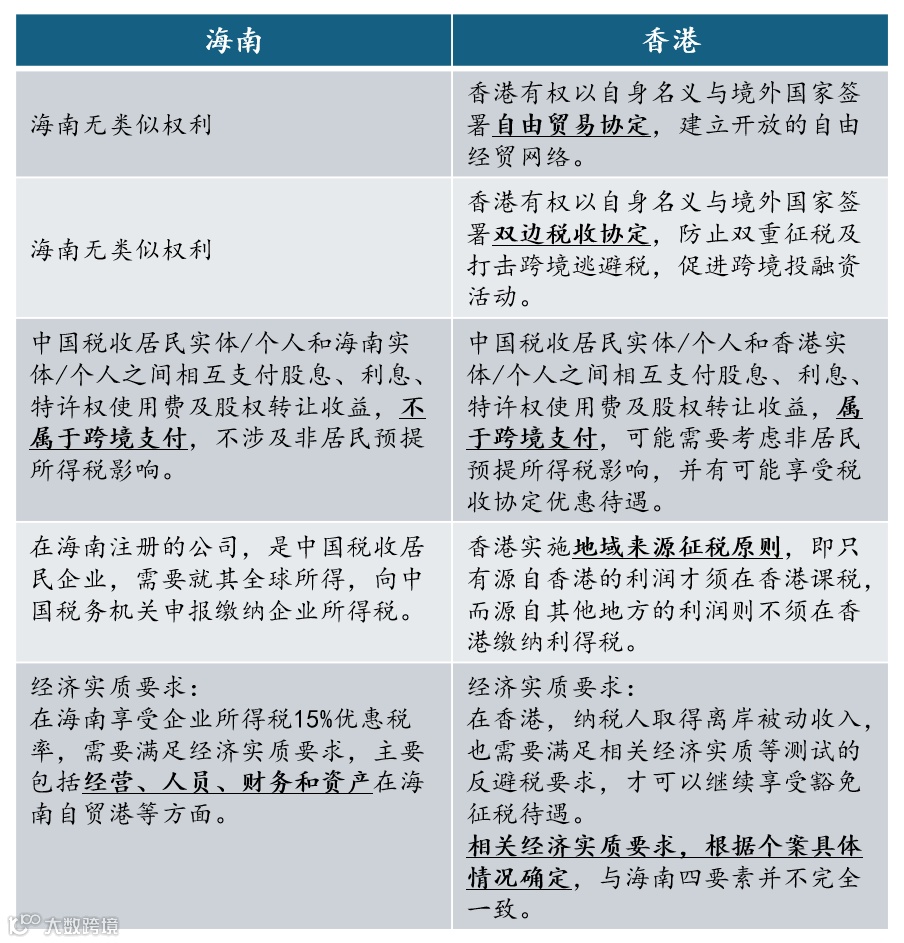 近期,不少企业关注海南是否会取代香港,以及是否需要调整跨境持股架构。事实上,海南与香港在法律体系、税制设计和国际连接等方面存在显著差异,两者更多是互补而非替代关系。