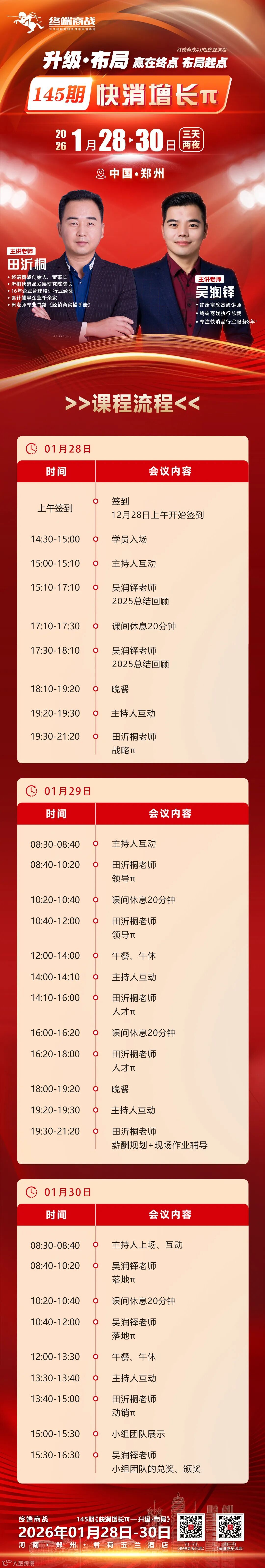 为期两天半两晚的深度研习,围绕战略、领导、人才、落地、动销五大核心模块,帮你系统升级增长引擎,锁定春节胜局,布局全年节奏。