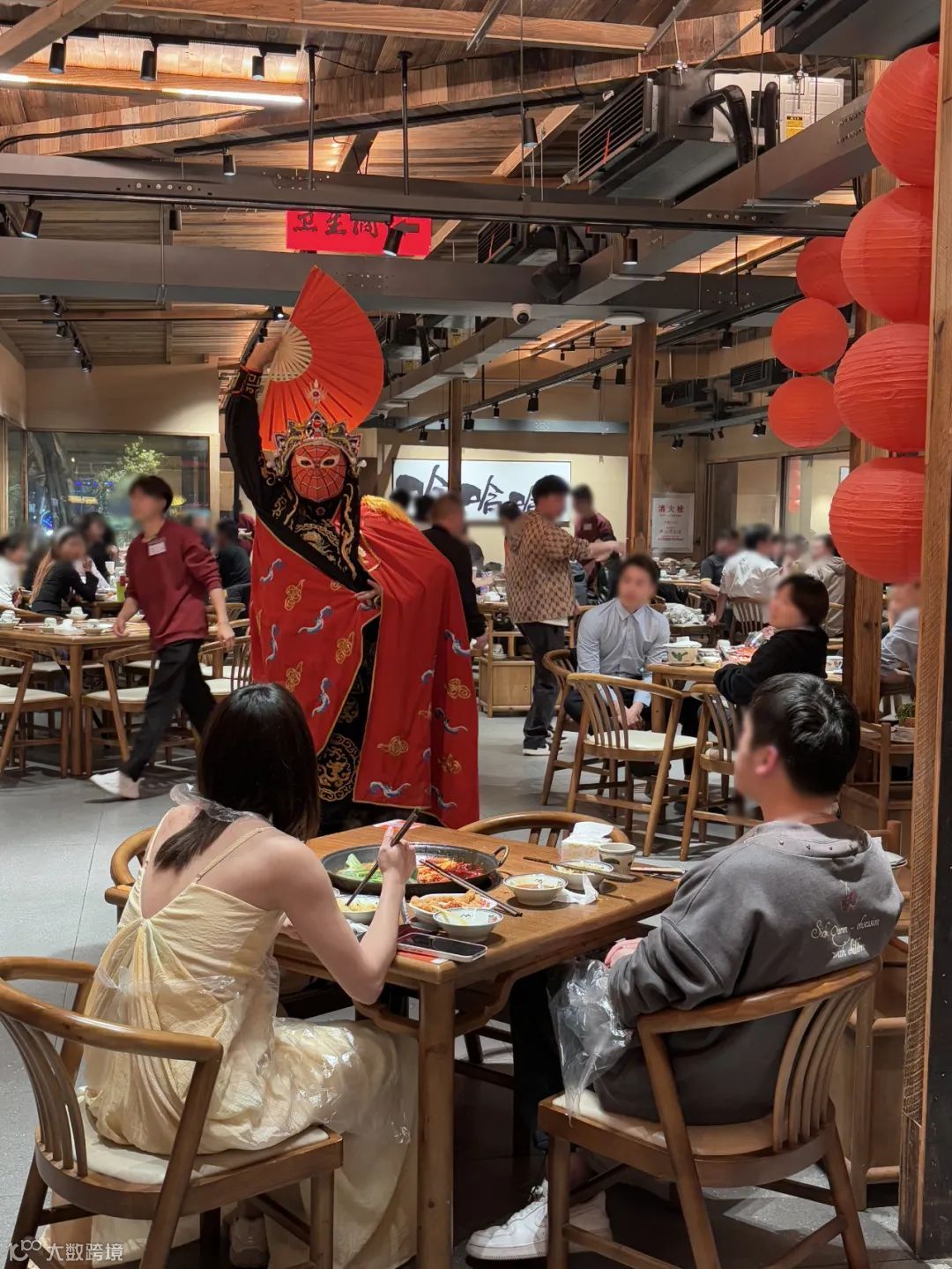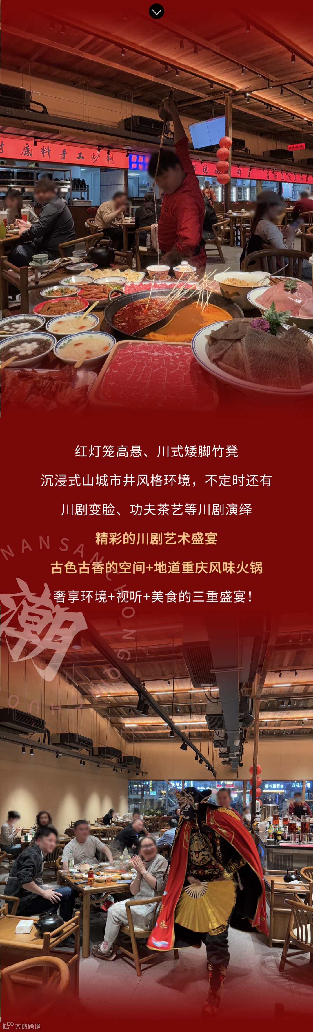 在遇南三·重庆火锅村吃火锅还能看表演!店内不定时会安排特色文化演绎。川剧变脸大师的迅疾手法令人目不暇接,神秘莫测;
