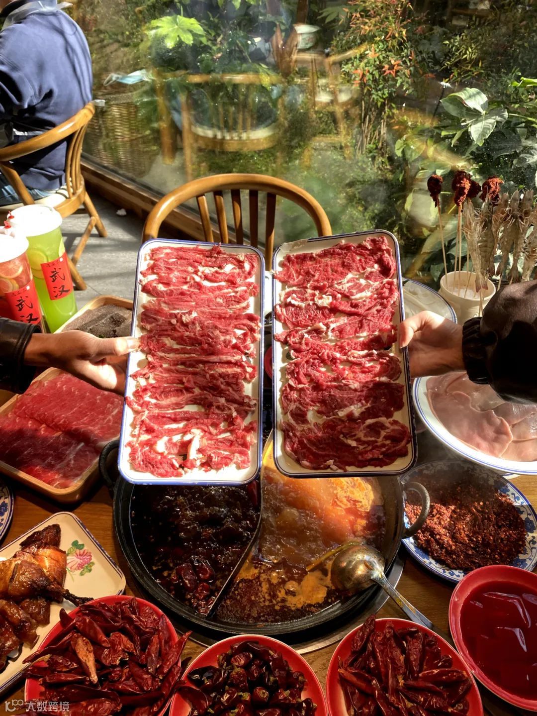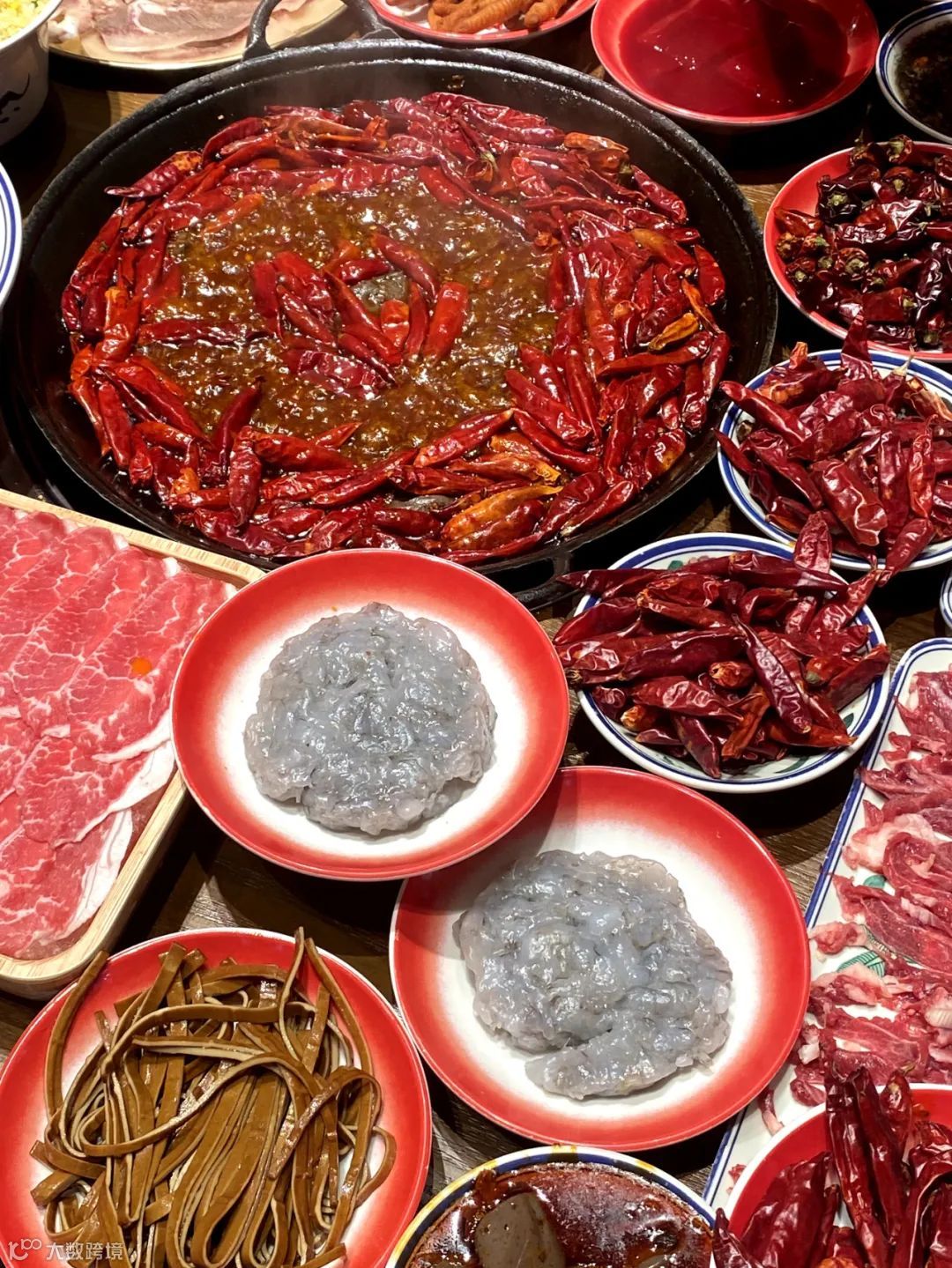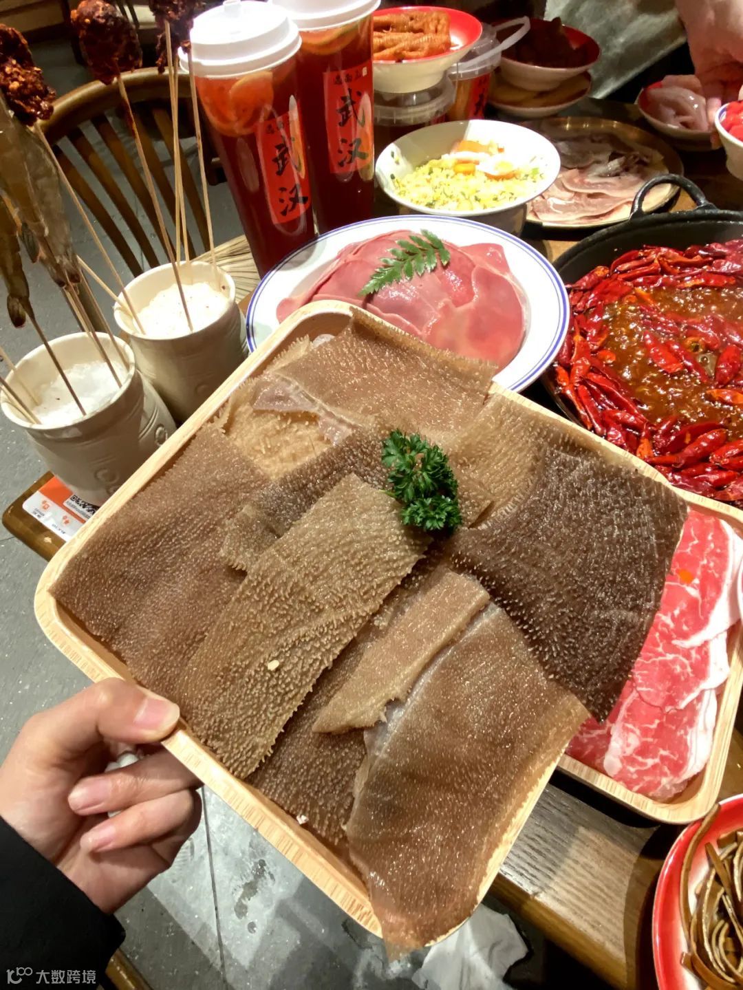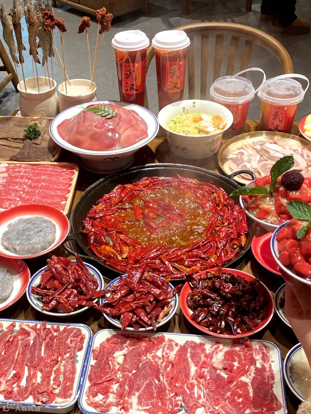 嫩肉鲜切现呈,肌理间缀着细密雪花纹。仅需红汤轻涮10秒,肉质弹嫩不散,吸饱麻辣汤汁后入口柔滑,肉汁混合牛油鲜香爆裂口腔,每一口都相当满足!