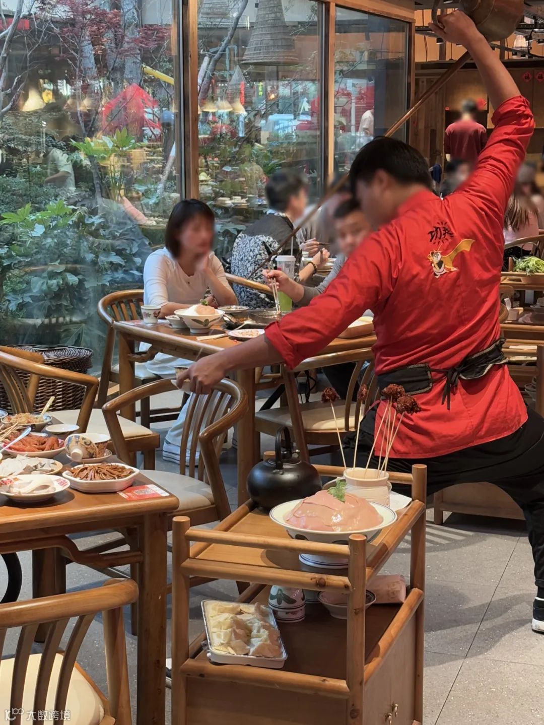 功夫茶艺师行云流水的动作,将茶道的韵味融入火热氛围。精彩的表演,真正实现边涮锅边看演出的沉浸式火锅盛宴。