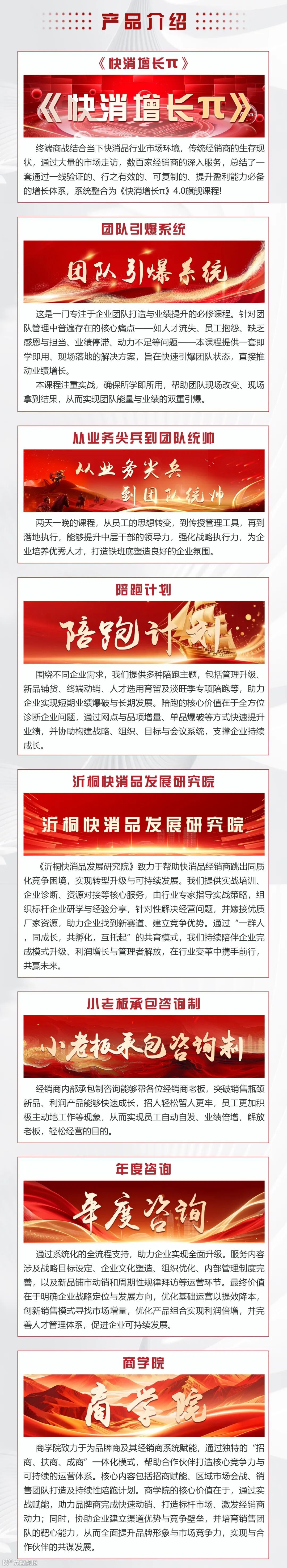 帮助员工成为行业专家,帮助经销商打造核心竞争力,帮助品牌商赋能经销商,推动快消品行业转型升级。 专注快消品经销商团队打造,终端动销!