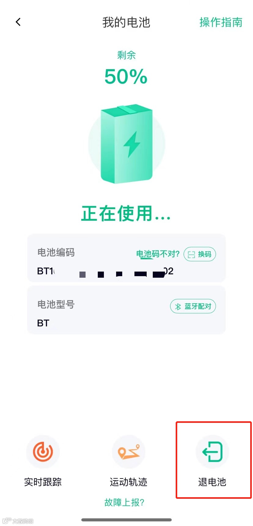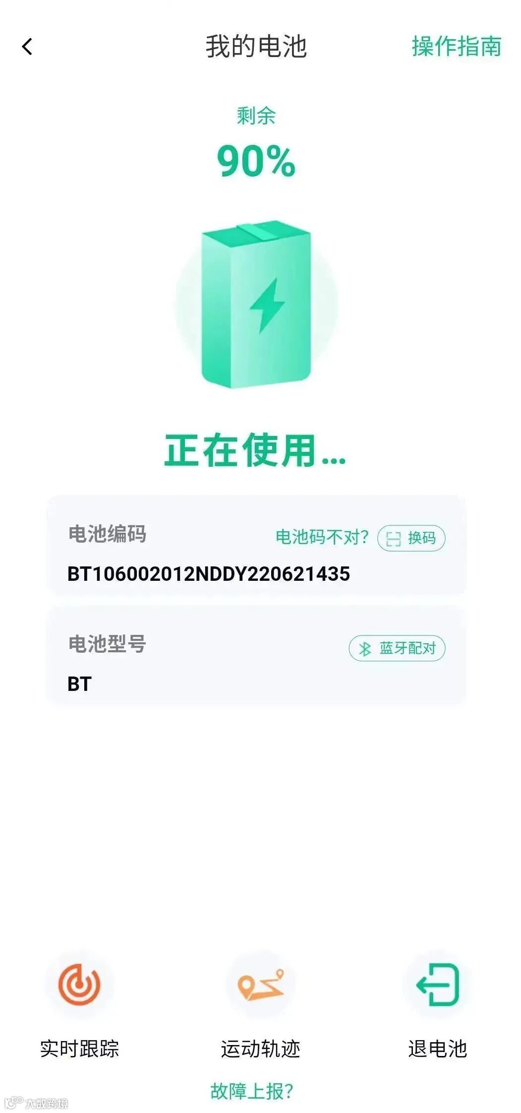 ● 电池电量在APP上久不更新是电池信号离线,请尽快更换电池以免影响骑行体验,新电池可使用蓝牙功能辅助(以电池编码BT106002012NDDY220704A32为例,中间代码为NDDY及LDTY的电池都可支持),手机与电池蓝牙连接后电量可正常更新,可通过换电APP查看电量变化情况。