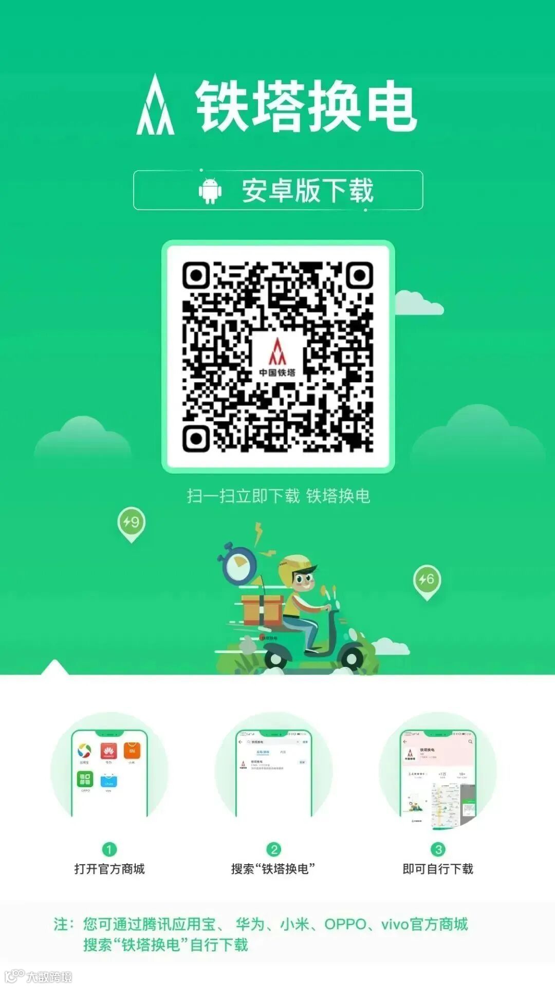 去各大应用商城或应用市场搜索关键字“铁塔换电”,下载并安装最新版本铁塔换电客户端APP,实名注册后缴纳押金及套餐租金。