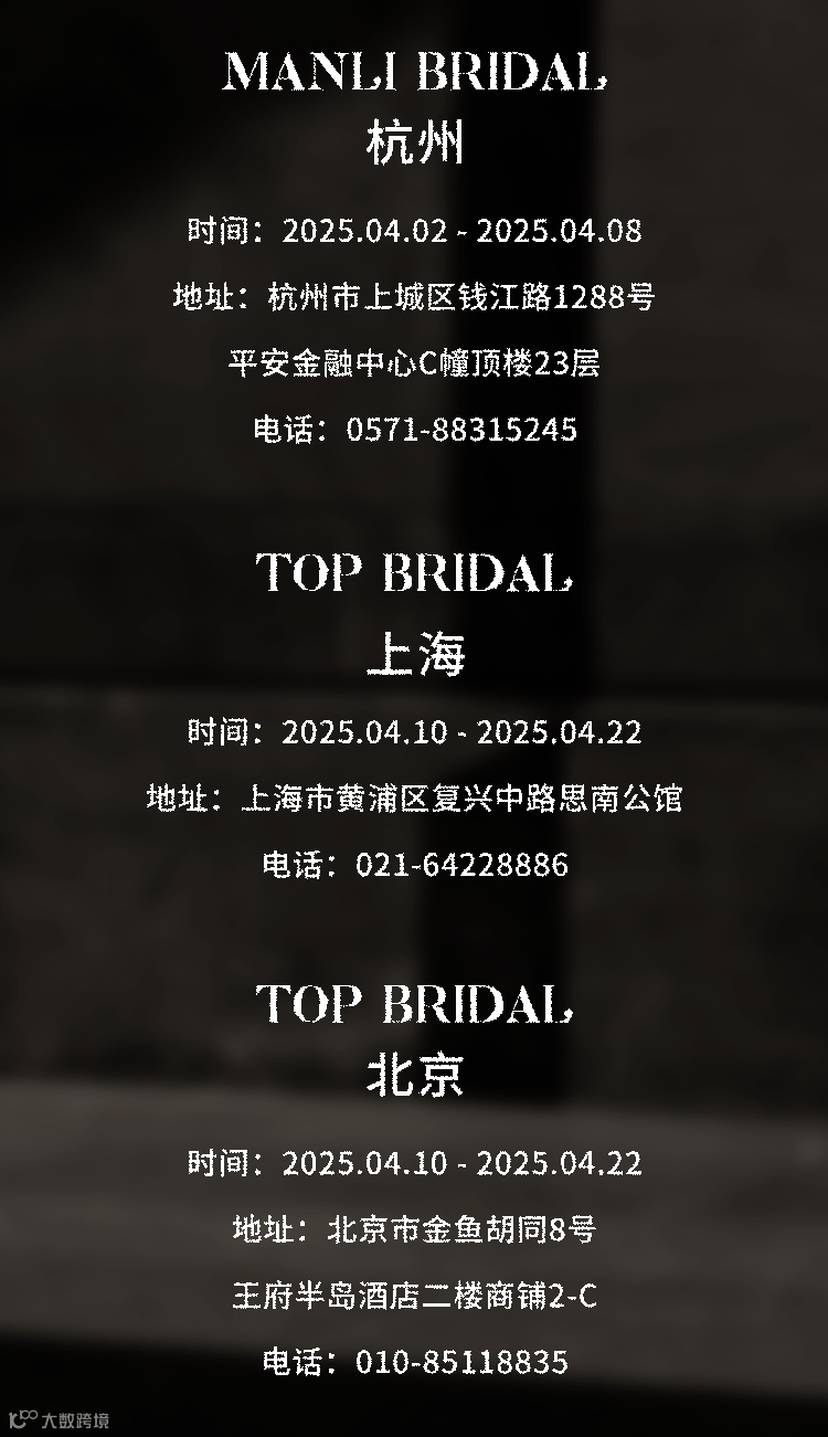 导读:2025婚纱礼服Trunk Show开启(点击查阅预约方式)