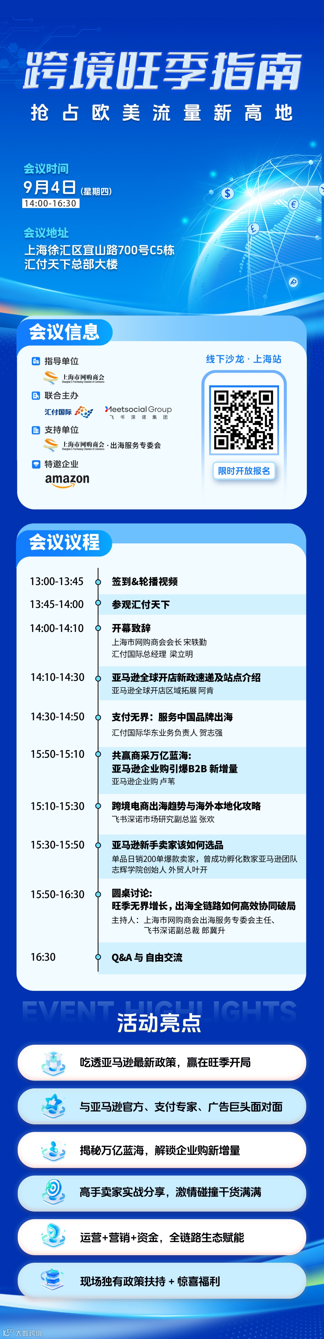 【活动报名】跨境旺季破局指南,抢占欧美流量新高地——上海站