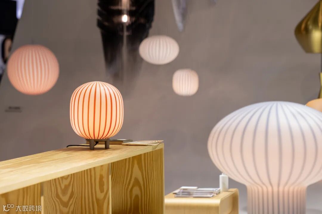 进博会现场呈现传奇建筑大师 Zaha Hadid 为 Slamp 设计的两款枝形吊灯 —— Aria 和 Avia。这两件极富雕塑感的作品采用 Slamp 常用的新型材料 Opalflex® 及品牌专利材料 Lentiflex®,通过50余层的叠加结构,将厚重的建筑体量感与材料的轻盈失重感巧妙融合,呈现飘逸而充满动势的光影之美。