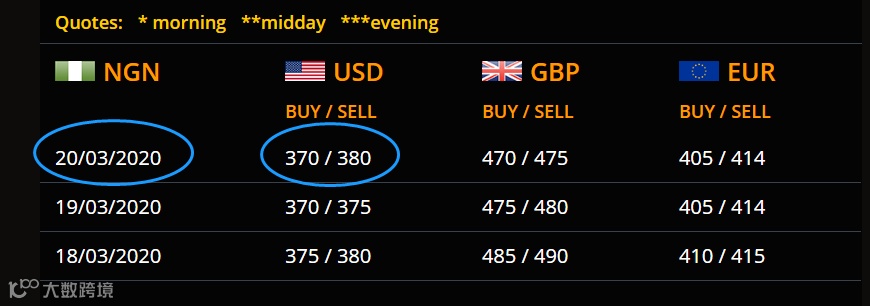国际货币转让经营商(IMTO)的价格为每美元376奈拉,银行向央行报价为每美元377奈拉,BDC运营商的价格为每美元378奈拉,终端用户价格不超过每美元380奈拉。