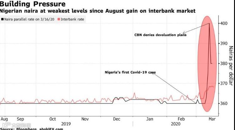 尼日利亚央行决定废除多重汇率政策,实施单一汇率制度[1]。官方汇率调整为1美元兑380奈拉。