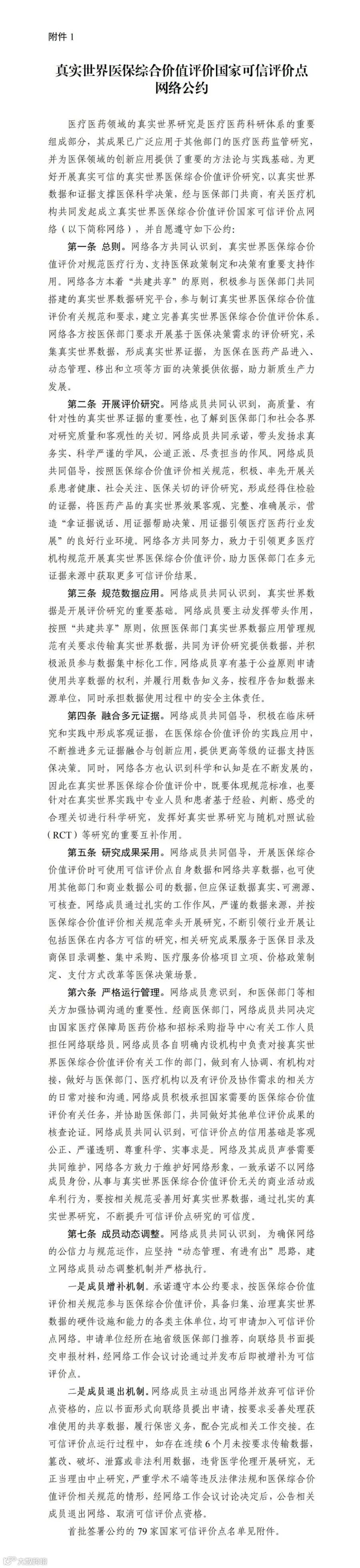 附件1:真实世界医保综合价值评价国家可信评价点网络公约
