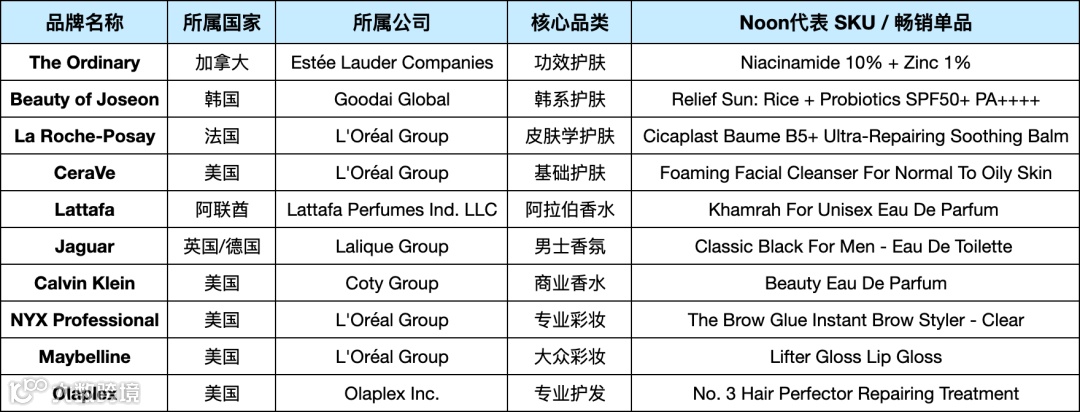 Noon平台的畅销美妆品牌格局呈现“国际大集团主导、本土品牌突围、韩系崛起”的多元生态: