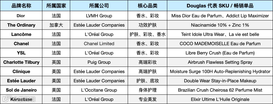 Douglas专注高端轻奢及成熟经典单品,强调长期复购与成熟品牌资产。