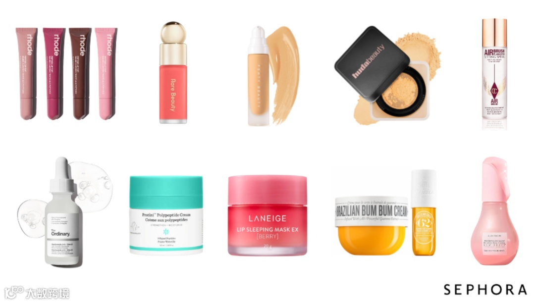 除了表格中提到的The Ordinary和Drunk Elephant等大众和中高端价位的美妆品牌,一些高端奢侈美妆品牌如Armani Beauty、CHANEL、Prada等在Sephora同样有着不错的销量。