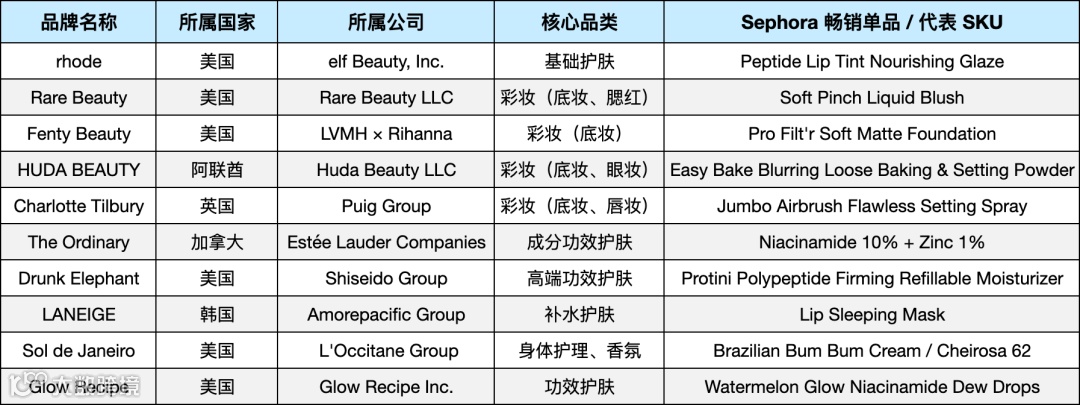 韩妆品牌:近年来Sephora引入越来越多韩妆,其中部分品牌(如 LANEIGE、Innisfree)通过明星单品+温和日常功效在护肤基础品类(如补水、保湿、舒缓)建立稳定销量和口碑。