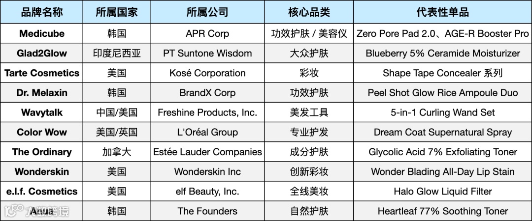 垂直赛道新兴品牌:COSRX、Sol de Janeiro凭社媒热度和差异化体验突围,显示细分赛道仍具爆发潜力。