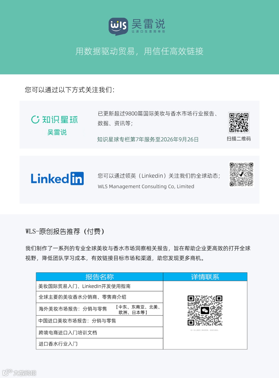 2026年,吴雷说将持续推出更多的报告,为您带来全球各大市场的浅析及分销商、贸易商、零售商等关键信息!此外我们还提供企业培训等增值服务,助力您和您的团队更高效地打开国际视野。