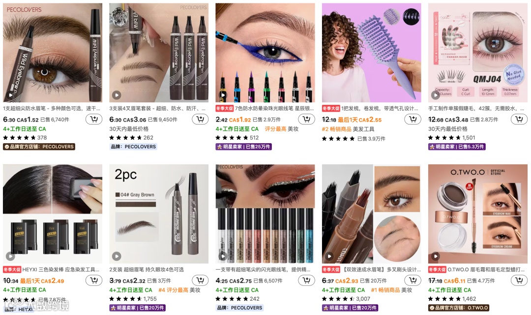 从产品层面看,2025年Temu受关注的美妆类型有: