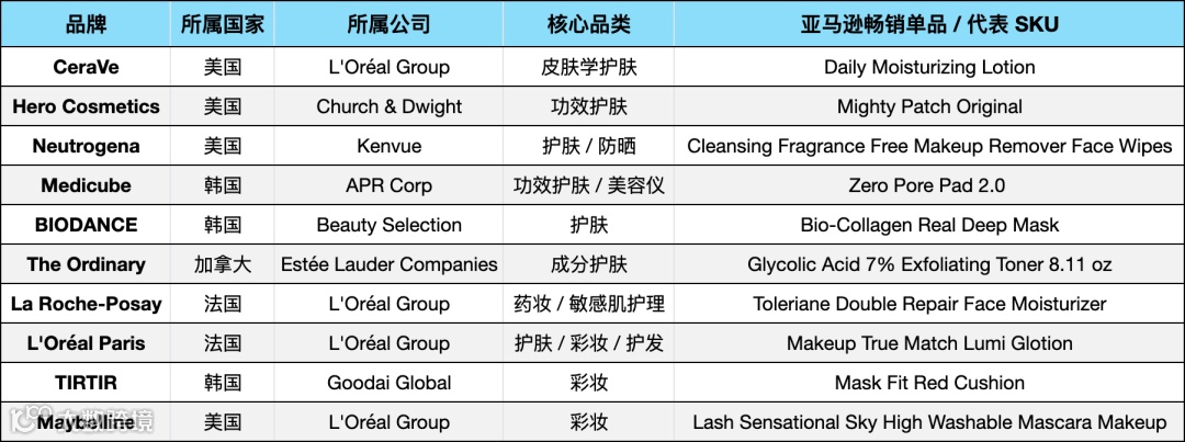 在这一背景下,本文将聚焦主流线上购物平台——从综合电商巨头亚马逊,到垂直类美妆电商平台Sephora、Douglas等,梳理过去一年中在各平台表现突出的美妆品牌。无论是快速崛起的新锐品牌Medicube、Biodance、Rhode,还是持续稳健输出的成熟品牌Clinique、Maybelline、CeraVe,它们在不同渠道的走红路径,都映射出平台差异化的消费逻辑与增长机会。