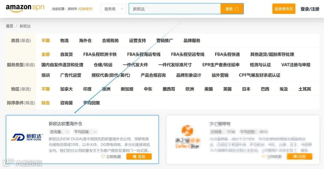 在亚马逊SPN找到新欧达海外仓的途径如下: