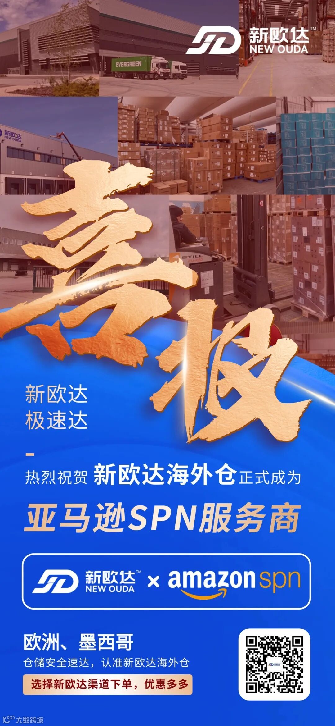 此次,新欧达海外仓与亚马逊达成战略合作,共同构建"仓储物流+平台"一体化出海解决方案,为中国卖家打造全链路跨境贸易高速通道。