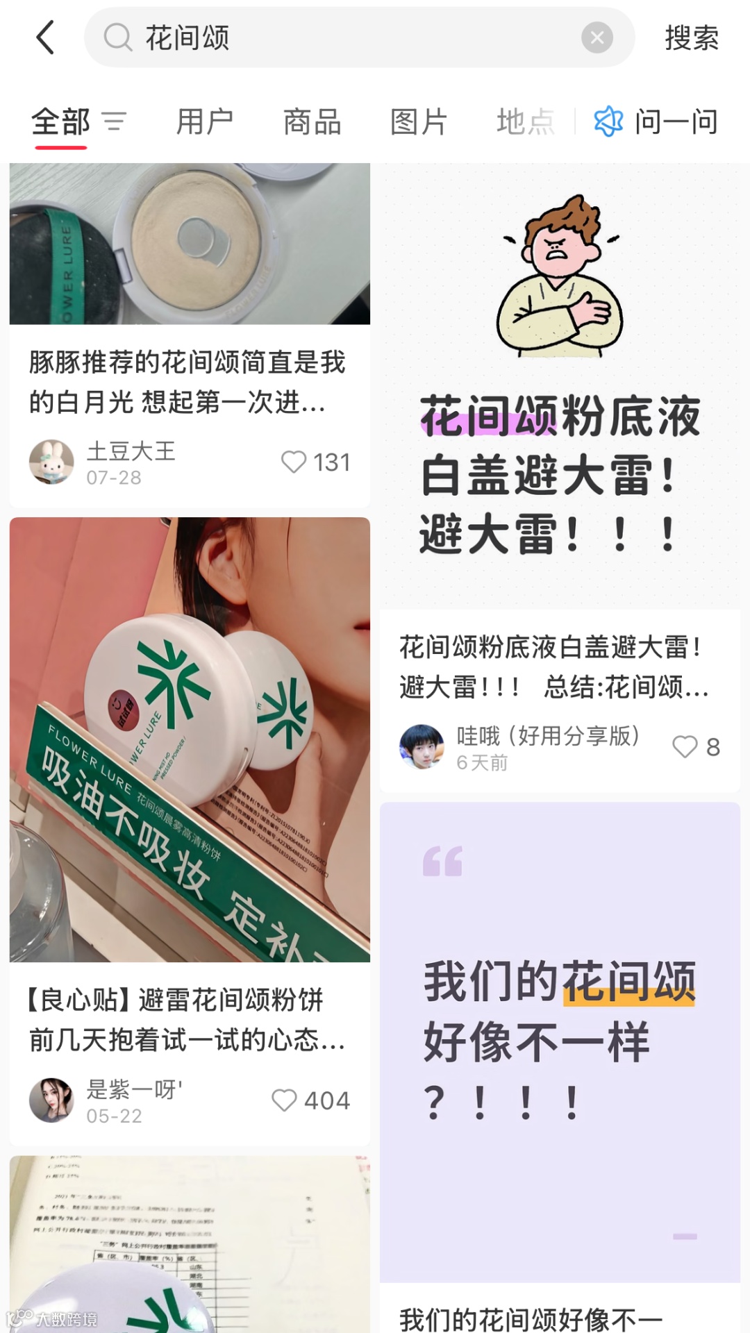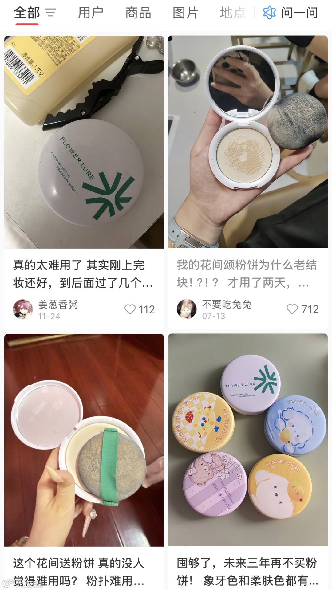 首先是消费者评价的两极分化。对花间颂来说,粉饼品类的通病——结块,是产品中争议性较大的问题之一。