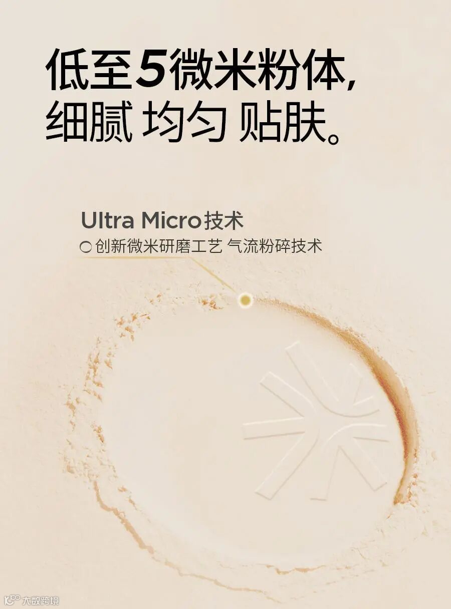 据产品详情页介绍,花间颂的粉饼采用Ultra Micro技术(创新微米研磨工艺 气流粉碎技术),搭配专利粉体(专利号ZL201510781190.X),能够实现瞬息、高倍、无痕控油。