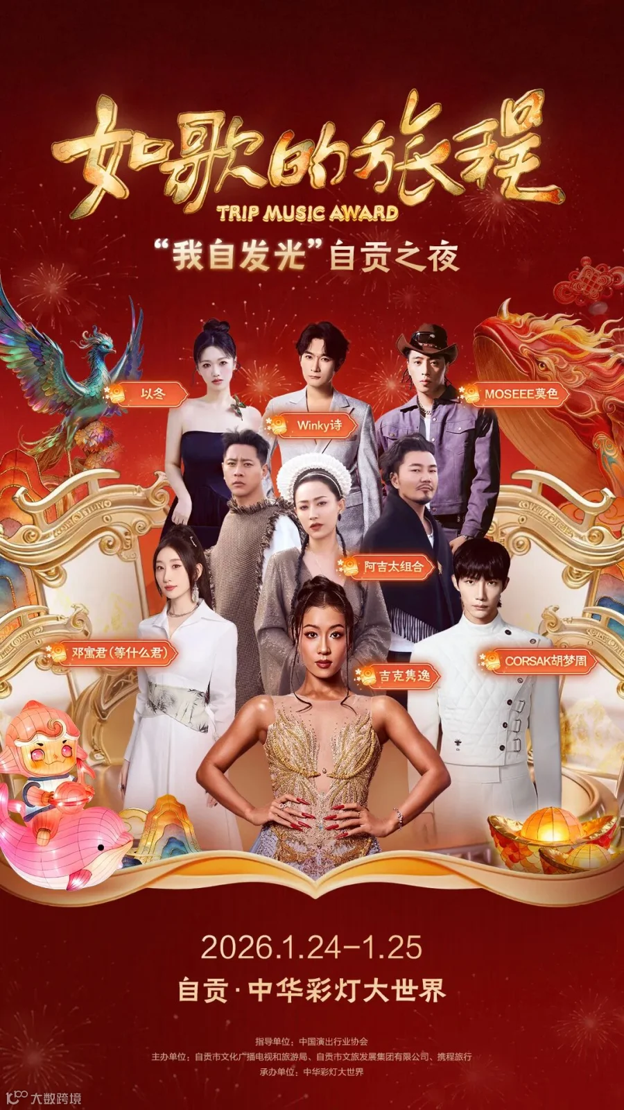 2026年1月24日至25日,“如歌的旅程”将以“我自发光”为主题,走进“千年盐都”自贡,在中华彩灯大世界开启一场融合非遗灯会与潮流音乐的公益文旅盛宴。作为第三十二届自贡国际恐龙灯会的重磅配套活动,本次盛会以公益属性为核心、创新业态为支撑,为自贡文旅注入鲜活活力,更在本土音乐培育、区域产业融合等方面发挥多元积极作用。