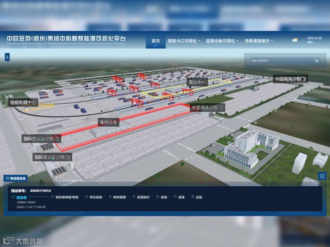 作为中欧班列的核心载体,郑州国际陆港承载着衔接国内国际双循环、服务“一带一路”建设的重要使命,以“智慧赋能、效率提升、服务优化”为方向,全力推进郑州国际陆港数字化、智能化升级,构建起覆盖“通关监管、场站运营、企业服务、园区管理”全链条的智慧运行体系。通过打造关、铁、场、企数据共享平台,打通信息壁垒,实现进出境货物“一次运抵、一次申报、一次装卸、一次验放”,报关、查验、清关等业务“一站式”办理,有效提升货物通行和班列运行效率,降低二次转运成本。
