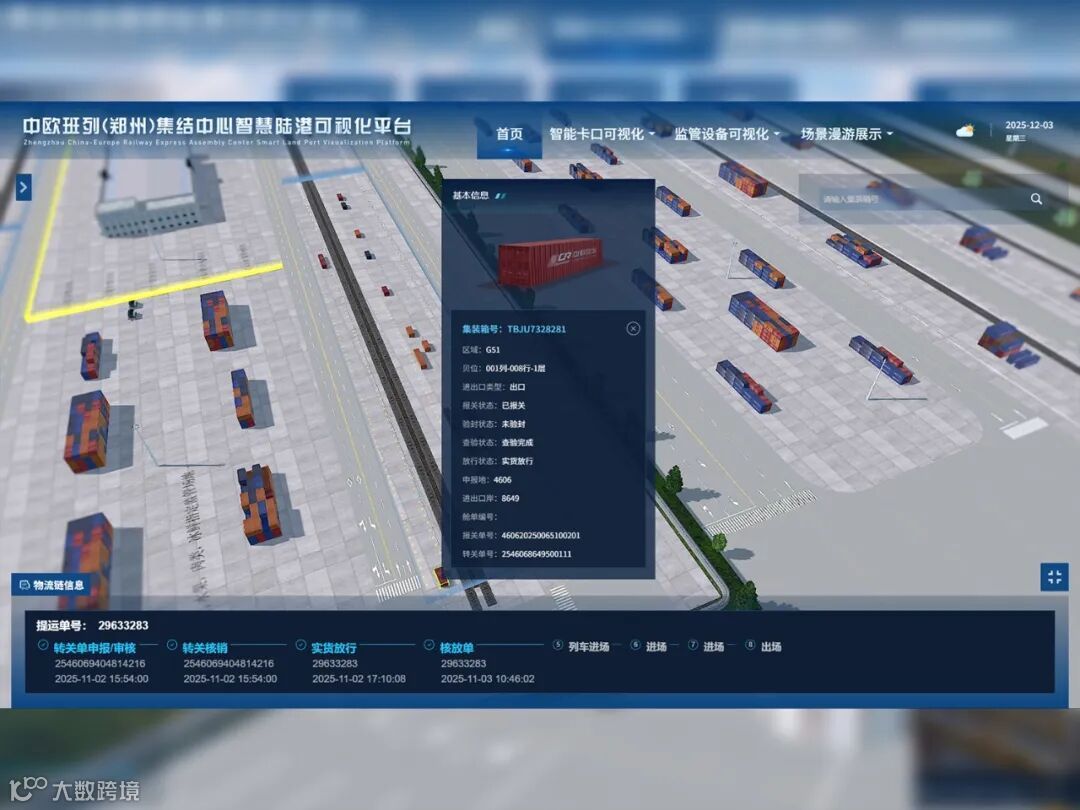 该项目凭借显著的创新性、系统的技术架构以及可复制推广的实践成效,从全国众多申报案例中脱颖而出。这是郑州国际陆港继2024年8月获批成为国家铁路智慧口岸试点以来,再次入选国家级典型案例,为全国口岸智慧化发展提供了可复制、可推广的“郑州经验”。