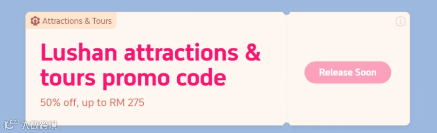 机票立减券:每单立减20%无门槛优惠,上限400人民币(KR)/1,000 (MY)/600人民币(TH),适用于从三国飞南昌转庐山的所有航班。出行时间为2025/12/30-2026/3/31。